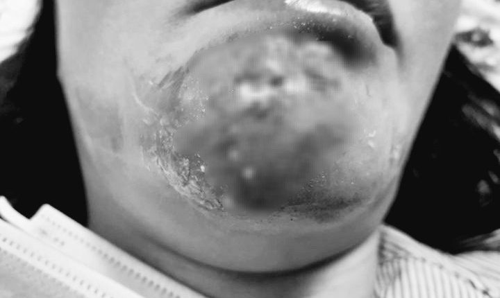 Sau khi nhập viện vào khoa Răng hàm mặt, chị T. được các bác sĩ chẩn đoán viêm tấy lan tỏa vùng cằm dưới hàm. Bệnh nhân được điều trị tích cực nhưng không tiến triển. Vùng cằm có mủ chảy ra, xuất hiện nhiều ổ áp xe, sốt cao liên tục.