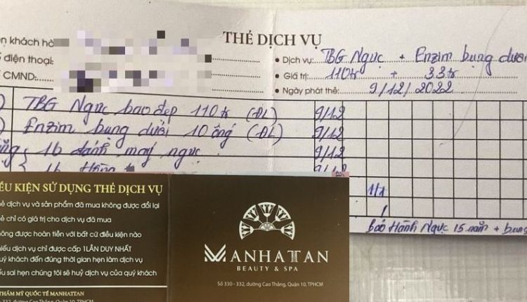 Chị Ngô Thị Ly (38 tuổi, Lâm Đồng, tên nhân vật đã thay đổi) biết đến Viện thẩm mỹ quốc tế Manhattan, 330-332 Cao Thắng, quận 10, TP.HCM qua các trang Facebook. Thấy quảng cáo hấp dẫn, tư vấn tận tình nên chị cho rằng đây là cơ sở lớn.